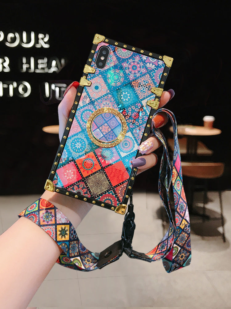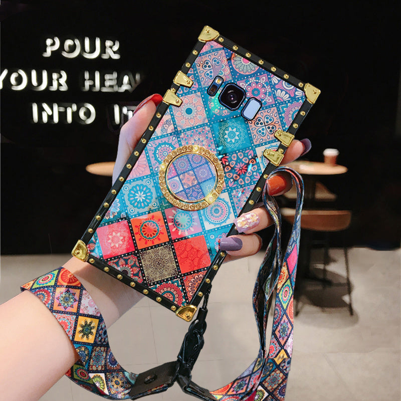 Features: Bohemian national style blue light mirror frame luxury square protective cover