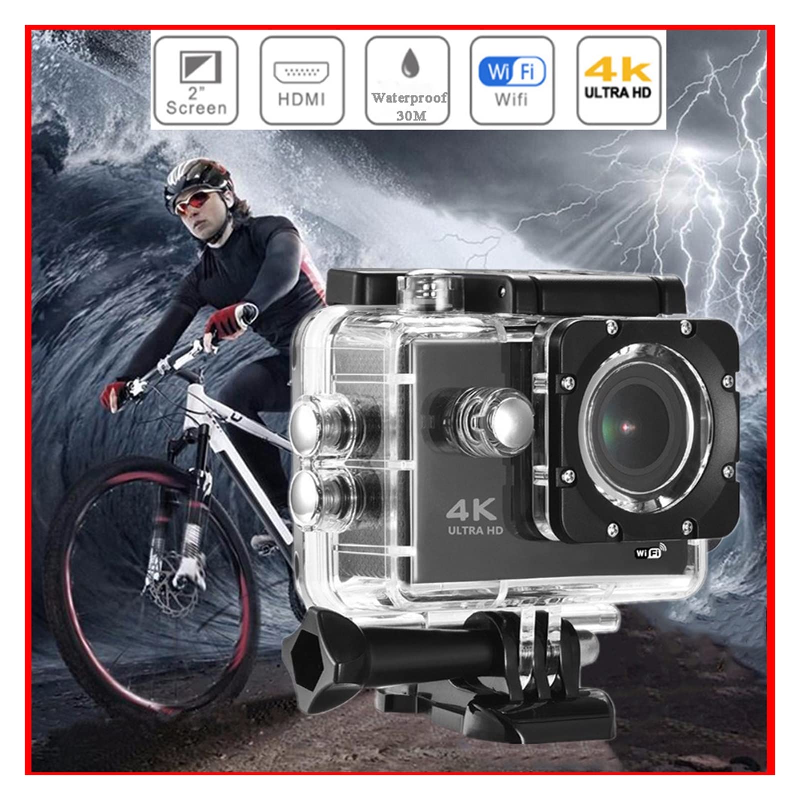 The Ultra HD Action Camera delivers crystal-clear 4K/1080P video at 30fps, perfect for biking, hiking, swimming, or extreme sports. With its 170° wide-angle lens, you’ll capture every detail in a broader view. The 2-inch HD display makes previewing and reviewing your shots easy, while built-in WiFi allows instant sharing to your phone.